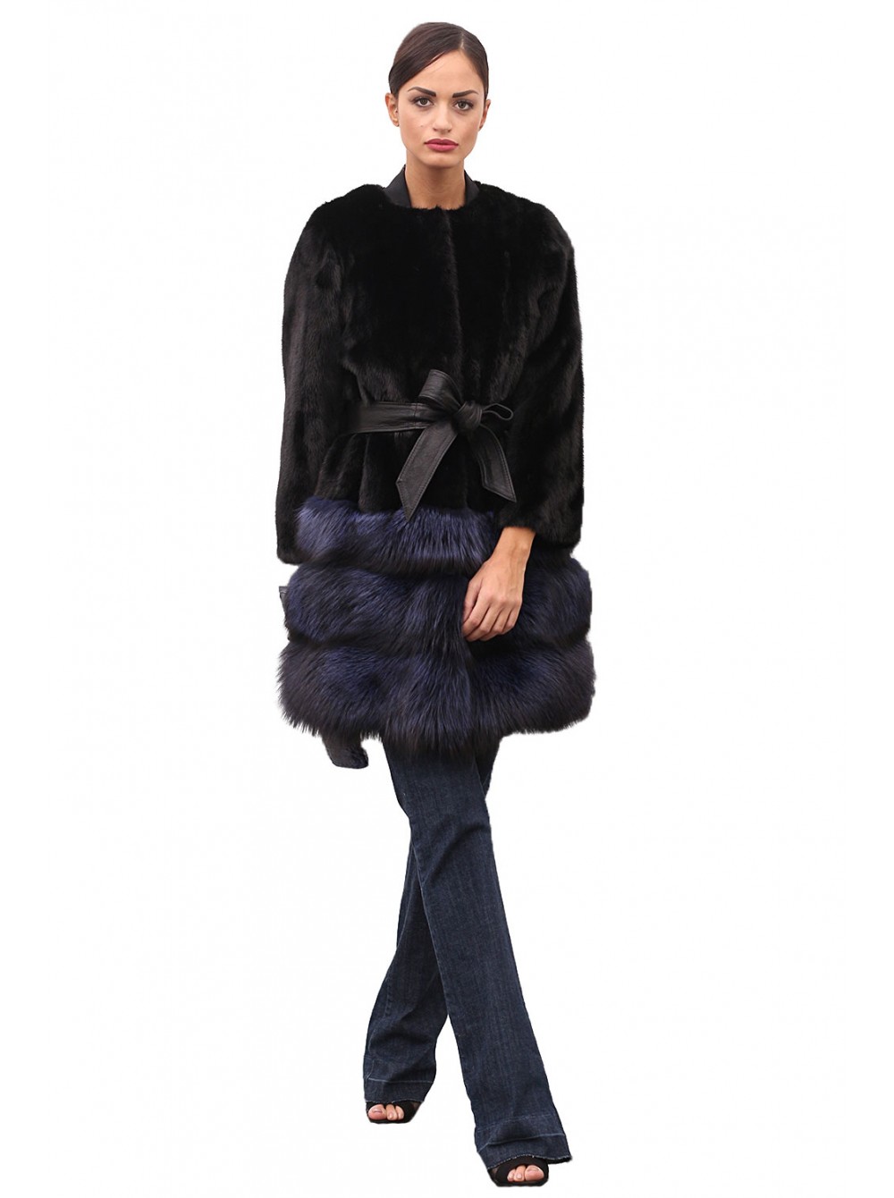Пальто из меха норки, цельные пластины. Рукав 3/4. Низ из меха чернобурки.
