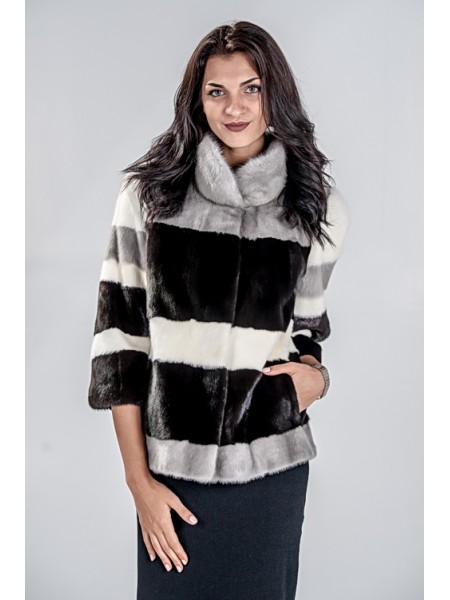 Жакет з норки. Комбінація стриженої норки чорного кольору і норки графіт. Наявність розмірів та ін..